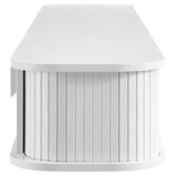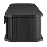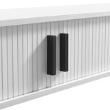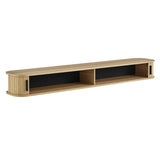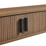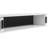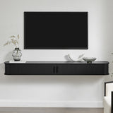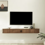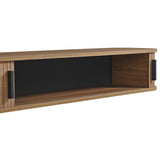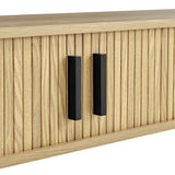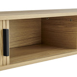 Features: Materials: MDF, particleboard with laminated wood grain finish, pine wood handles Includes: 1 x floating TV unit, 1 x assembly manual Slimline profile perfect for modern living spaces Two smooth sliding slatted doors keep essentials organised Rounded corners enhance safety The wood grain finish complements a variety of décor styles Elegant black handles for a refined touch All wall mounting hardware is included (suitable for masonry walls only) WARNING Children have died from furniture toppling over Always secure your television with an anchor deviceNever allow children to stand, climb or hang on drawers, doors, or shelves