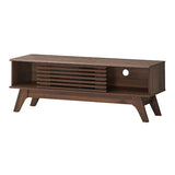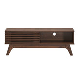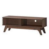 Features: Materials: particleboard Includes: 1 x entertainment unit Sturdy build Finished all sides 2 x open shelves, 1 x sliding door Maximum recommended weight capacity: tabletop: 10kg; shelving: 7kg per section WARNING Children have died from furniture toppling over Always secure your television with an anchor deviceNever allow children to stand, climb or hang on drawers, doors, or shelves