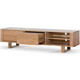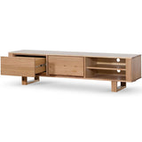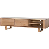 Features Type: TV Cabinets Frame Material: Solid Wood; Manufactured Wood Drawers Included: YesNumber of Drawers: 2Drawer Material: MDF with veneer finish Open Shelves Included: YesNumber of Open Shelves: 2Open Shelf Material: MDF with veneer finish Cable Hole Included: YesNumber of Cable Holes: 2 Primary Colour: Light Wood Style: Contemporary; Scandinavian Collection: Caridad Topple Risk: Yes Care Instructions: Wipe clean with a dry cloth Assembly Assembly Required: YesType of Assembly: MinimalRecommended Persons Required for Assembly: 2Assembly Details: Assembly instructions included with the product  Limited warranty Product Warranty: 1 Year  StyleThe Caridad 2 Drawer TV Unit is a Contemporary or Scandinavian style product. Contemporary style bridges the gap between traditional and modern. Pieces feature simple and clean lines with smooth surfaces without any carving or adornment. Scandinavian style is exemplified by clean-lines, simple, and functional. Scandinavian interiors feature bright white on floors, fabrics, and walls.While, unpainted, light wood furniture that embraces the natural grain adds much-needed warmth to spaces. Sleek, utilitarian furniture without much embellishmentis a mainstay in this minimalist style with a modern flair. You can shop for more Contemporary or Scandinavian TV Units in the Furniture section of our site.