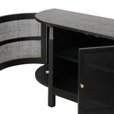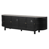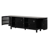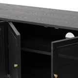 Features: Materials: ash wood frame, rattan panels, plywood shelves, metal handles Includes: 1 x entertainment unit Unique design with a striking blend of textures and finishes Offers spacious storage while elevating your living room with contemporary elegance A perfect statement piece for those seeking a sophisticated yet functional entertainment unit  WARNING Children have died from furniture toppling over Always secure your television with an anchor deviceNever allow children to stand, climb or hang on drawers, doors, or shelves