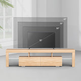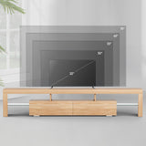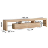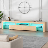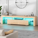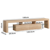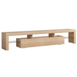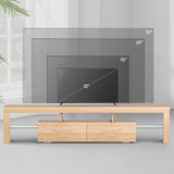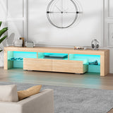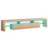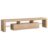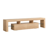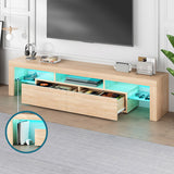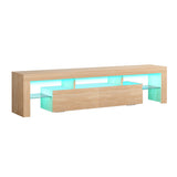 Features: Materials: 1.5cm E1 grade particleboard with melamine finish & MDF frame, tempered glass, steel drawer runners Includes: 1 x entertainment unit, 1 x assembly manual Customisable LED light with remote control Improved wear-resistant melamine finish Push-to-open drawers with rebound devices Crafted from 1.5cm thick E1 grade particleboard Durable 5cm thick tempered glass shelves Smooth finished slide rails Anti-tip kit included Load capacities: 50kg overall, 8kg per drawer, 5kg per glass shelf WARNING Children have died from furniture toppling over Always secure your television with an anchor deviceNever allow children to stand, climb or hang on drawers, doors, or shelves