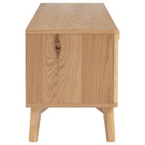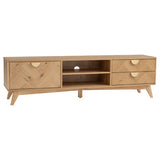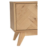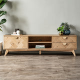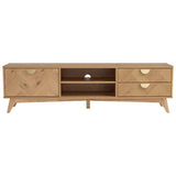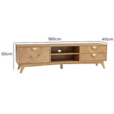 Features: Materials: Malaysian oak wood legs, engineered wood with veneer finish frame, drawers & shelves Includes: 1 x entertainment unit Herringbone pattern & rounded edges 2 drawers, 1 cabinet, & 2 open shelves Soft-closing drawers & doors Can hold up to 30kg Commercial & residential use WARNING Children have died from furniture toppling over Always secure your television with an anchor deviceNever allow children to stand, climb or hang on drawers, doors, or shelves