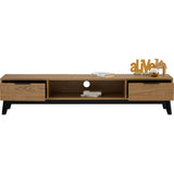Features: Materials: Malaysian oak wood frame, stainless steel drawer runners, MDF & veneer open shelf Includes: 1 x entertainment unit WARNING Children have died from furniture toppling over Always secure your television with an anchor deviceNever allow children to stand, climb or hang on drawers, doors, or shelves