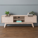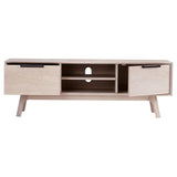 Features: Materials: Malaysian oak wood legs, engineered wood with veneer finish frame, drawers & shelves, aluminium handles Includes: 1 x entertainment unit Minimalist essence of retro-inspired design Adjustable shelves & metal handles Commercial & residential use WARNING Children have died from furniture toppling over Always secure your television with an anchor deviceNever allow children to stand, climb or hang on drawers, doors, or shelves