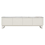 Features: Materials: matte ceramic with marble-look finish and tempered glass tabletop, MDF with painted finish frame and shelves, powder-coated steel legs, hard plastic foot pads, steel assembly hardware Includes: 1 x TV unit, 1 x assembly manual, 1 x assembly hardware kit, 1 x anti-topple kit It embodies modern elegance with a refined architectural flair Crowned with a ceramic tabletop with marble-look finish, layered on scratch-resistant tempered glass for strength and beauty Brings harmony, durability, and timeless design into any contemporary home Elegant ivory painted finish WARNING Children have died from furniture toppling over Always secure your television with an anchor deviceNever allow children to stand, climb or hang on drawers, doors, or shelves