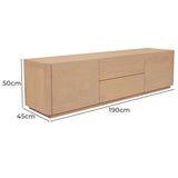 Features: Materials: mindi wood frame & drawers, iron runners Includes: 1 x entertainment unit A symphony of design & function that enriches your living space with its understated elegance Crafted from solid mindi wood Celebrates the natural beauty & robust strength inherent in its material Complements any décor scheme with ease Captivates & meets the practical demands of modern entertainment needs Offers ample storage with 2 smoothly operating drawers & 2 doors that reveal additional space, perfect for organising electronics, media, & accessories WARNING Children have died from furniture toppling over Always secure your television with an anchor deviceNever allow children to stand, climb or hang on drawers, doors, or shelves