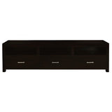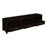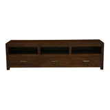 Features: Contemporary design The producer of this product has obtained a Timber Legality Verification System Certificate (SVLK) from the Indonesian Government - verifying that the timber used to create this product is environmentally sustainable and legally sourced Cutouts for easy cable routing All Desiron furniture is fully assembled Handmade by professional craftsmen Chocolate unit has silver handles and Mahogany unit has gold handles Constructed of kiln dried, solid mahogany timber NB: Colours may vary from image depicted due to differences in wood and variance in display on computer screens Shelf space dimensions: w56 x d40 x h15 (same for left, middle and right) Paris 3 Drawer Low Entertainment Unit WARNING Children have died from furniture toppling over Always secure your television with an anchor deviceNever allow children to stand, climb or hang on drawers, doors, or shelves