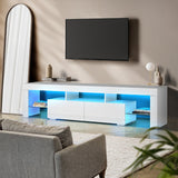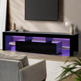 Features: Materials: particleboard, tempered glass Includes: 1 x entertainment unit with LED, 1 x remote control, 1 x power adapter, 1 x assembly manual 16 light colours & 4 flashing modes RGB LED lights High-gloss finish front facing panel Tempered glass shelf 2 large drawers SAA-approved plug Anti-tip kit included Easy to assemble  WARNING Children have died from furniture toppling over Always secure your television with an anchor deviceNever allow children to stand, climb or hang on drawers, doors, or shelves