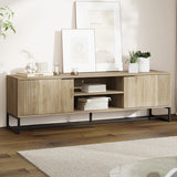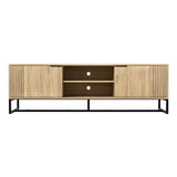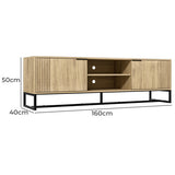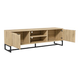 Features: Materials: particleboard frame, powder-coated iron legs, iron handles Includes: 1 x entertainment unit, 1 x assembly manual The sleek clean lines & an uncluttered profile offers an elegant & contemporary addition to any home Meticulously designed to marry form & function, providing a classic & timeless contemporary aesthetic Spacious storage for all entertainment essentials 2 open shelves provide complementary storage with spacious offerings Rust-resistant, powder-coated iron legs provide balanced & durable support Strong steel hinges Anti-tipping kit included Open shelves dimension: H15 x W52 x D36cm WARNING Children have died from furniture toppling over Always secure your television with an anchor deviceNever allow children to stand, climb or hang on drawers, doors, or shelves