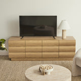Features: Materials: particleboard, MDF with laminated finish Includes: 1 x entertainment unit, 1 x anti-topple kit, 1 x assembly manual Spacious compartments provide ample room for media devices, décor pieces, books, and more Natural wood-look finish offer a sleek, minimalist aesthetic that complements various styles Push-to-open mechanism for a sleek, handle-free appearance WARNING Children have died from furniture toppling over Always secure your television with an anchor deviceNever allow children to stand, climb or hang on drawers, doors, or shelves