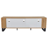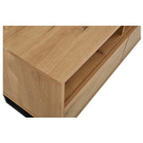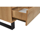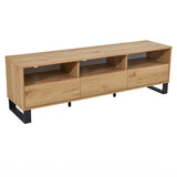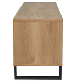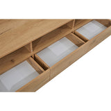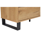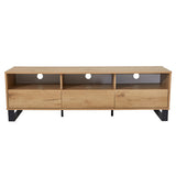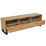 Features: Materials: particleboard with oak veneer finish, metal legs Includes: 1 x entertainment unit 3 x shelves, 3 x drawers, 3 x cable holes 3 x large open shelves with closed backs provide space for display of books or other décor items Drawers sit on metal runners for smooth opening & closing Rear wiring access to keep all wires neatly out of sight Helps streamline your family room or gaming setup WARNING Children have died from furniture toppling over Always secure your television with an anchor deviceNever allow children to stand, climb or hang on drawers, doors, or shelves