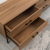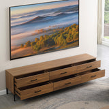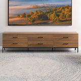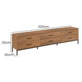 Features: Materials: MDF with melamine veneer finish, steel legs and handles Includes: 1 x TV unit, 1 x assembly manual, 1 x anti-topple kit, 1 x set of assembly manual Versatile TV unit design complements a variety of interior styles Accommodates large televisions with ease Six spacious drawers with steel handles for concealed storage Contrasting black metal legs add a modern detail Practical design offers both storage and display functionality WARNING Children have died from furniture toppling over Always secure your television with an anchor deviceNever allow children to stand, climb or hang on drawers, doors, or shelves