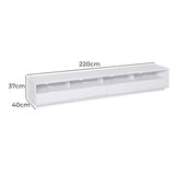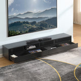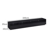 Features: Materials: MDF with melamine veneer finish, steel runners and hardware Includes: 1 x TV unit, 1 x assembly manual, 1 x set of assembly hardware Four spacious component shelves or extended sound bar shelf option Two large drawers with four internal compartments for organised storage Built-in cable management for a clean setup Plinth base design enhances stability and adds a refined look Ball-bearing runners for smooth, reliable drawer operation Suitable for home theatre setups or modern living room storage WARNING Children have died from furniture toppling over Always secure your television with an anchor deviceNever allow children to stand, climb or hang on drawers, doors, or shelves