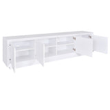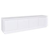 Features: Materials: hollow board MDF with PVC laminate finish frame, particleboard with PVC laminate finish shelves Includes: 1 x TV unit, 1 x assembly manual A classic addition to your home Simple, classic design makes it a timeless piece for your home Plenty of storage for household essentials With cable holes to store your electronics seamlessly Faceted front edges offer a design-forward finish WARNING Children have died from furniture toppling over Always secure your television with an anchor deviceNever allow children to stand, climb or hang on drawers, doors, or shelves