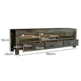 Features: Material: MDF, acacia wood, metal Metal wire brushed finish Metal tenon joint detail Full extension metal glides Solid wood construction: panels may feature joined wooden pieces, following industry standards Note: The images are taken in a studio environment, please allow for colour variations depending on your monitor settings & the lighting environment in your home WARNING Children have died from furniture toppling over Always secure your television with an anchor deviceNever allow children to stand, climb or hang on drawers, doors, or shelves
