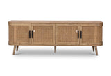 The Whyalla 4 Door Entertainment Unit brings coastal-inspired style and smart storage to your living space. With a warm natural finish and textured rattan fronts across four doors, it adds breezy character while keeping the look light and modern. Angled legs lift the design, giving it an airy feel. Inside, generous storage space hides away cables, movies, or consoles, while the wide top is perfect for your TV and décor. The Whyalla makes relaxing at home effortlessly stylish.