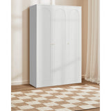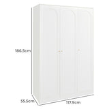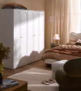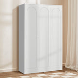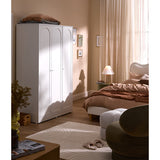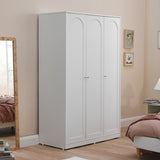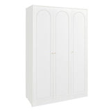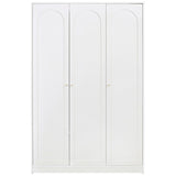 Features: Materials: particleboard and MDF frame and doors, plywood shelves, aluminium handles and hanging rail, polypropylene foot pads Includes: 1 x wardrobe, 1 x set of extra handles, 1 x set of assembly parts, 1 x anti-topple kit, 1 x assembly manual Designed with three doors, this wardrobe offers a spacious interior to store and organise clothes, shoes, and other accessories With two adjustable shelves The arch-shaped design on the door panels complement a variety of interior styles, from contemporary to classic Perfect for maximising space while keeping everything neatly tucked away and easily accessible Ideal in the bedroom, hallway, or guest room The ideal choice for larger families or for those who require more storage space Comes with a set of gold and a set of white handles to suit your décors Easy to clean and maintain, allowing you to enjoy a hassle-free storage solution Consider matching this wardrobe with other furniture pieces from the Gina collection for a more cohesive look WARNING Children have died from furniture toppling over Always secure this furniture with an anchor deviceNever allow children to stand, climb or hang on drawers, doors, or shelvesNever open more than one drawer at a timePlace heavy items down lowNever place a television on this furniture
