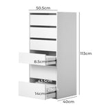 Features: Materials: particleboard with paper veneer finish, powder-coated stainless steel runners Includes: 1 x wardrobe, 1 x assembly manual 6 drawers Built-in wardrobe units Multiple units can be attached together Sturdy structure Easy maintenance & cleaning Can be utilised as a wardrobe insert or standalone storage solution WARNING Children have died from furniture toppling over Always secure this furniture with an anchor deviceNever allow children to stand, climb or hang on drawers, doors, or shelvesNever open more than one drawer at a timePlace heavy items down lowNever place a television on this furniture
