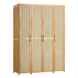 Features: Materials: bamboo frame, aluminium handles, polypropylene door panel Includes: 1 x wardrobe, 1 x anti-topple kit, 1 x assembly manual Stylish wardrobe doors with a rattan-inspired design Enhances airflow to keep clothes fresh and prevent mildew Includes a hanging rail and shelving for organised storage Built for daily use with smooth finishing and meticulous artisanship WARNING Children have died from furniture toppling over Always secure this furniture with an anchor deviceNever allow children to stand, climb or hang on drawers, doors, or shelvesNever open more than one drawer at a timePlace heavy items down lowNever place a television on this furniture