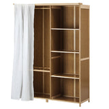 Features: Materials: bamboo, dust-proof cloth curtain Includes: 1 x open wardrobe, 1 x dust-proof curtain, 1 x anti-topple kit, 1 x assembly manual Crafted from responsibly sourced bamboo for a natural and stylish look Includes a hanging rail, four shelves, and two rack shelves for organising clothes and footwear Easily access your items while the dust-proof cloth curtain keeps things discreet when needed Strong legs and high weight capacity ensure long-lasting use Simple setup with included instructions; just wipe clean with a damp cloth  WARNING Children have died from furniture toppling over Always secure this furniture with an anchor deviceNever allow children to stand, climb or hang on drawers, doors, or shelvesNever open more than one drawer at a timePlace heavy items down lowNever place a television on this furniture