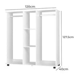 Features: Materials: particleboard with paper laminate finish Includes: 1 x wardrobe, 1 x assembly instructions Contemporary & stylish Sturdy construction & has ample storage 2 hanging rails & 3 tier cube storage Lockable wheel design WARNING Children have died from furniture toppling over Always secure this furniture with an anchor deviceNever allow children to stand, climb or hang on drawers, doors, or shelvesNever open more than one drawer at a timePlace heavy items down lowNever place a television on this furniture