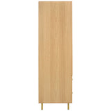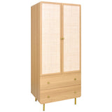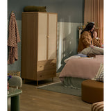 Features: Materials: particleboard and MDF frame and doors, rattan door panels, plywood drawers and shelf, aluminium legs, hanging rail and handles, steel drawer runners, polypropylene foot pads Includes: 1 x wardrobe, 1 x set of assembly parts, 1 x anti-topple kit, 1 x assembly manual The combination of the rattan door panels and gold handles offer a natural, textured look that enhances the aesthetic of any room with added elegance With two spacious doors and two drawers, this wardrobe offers ample storage for clothes, accessories, and other personal items Adds style to your home while keeping essentials organised Designed for versatility, this wardrobe is ideal for both larger and smaller spaces, providing an efficient and stylish storage option while taking up minimal space Consider matching this wardrobe with other furniture pieces from the Maxine collection for a more cohesive look WARNING Children have died from furniture toppling over Always secure this furniture with an anchor deviceNever allow children to stand, climb or hang on drawers, doors, or shelvesNever open more than one drawer at a timePlace heavy items down lowNever place a television on this furniture