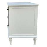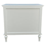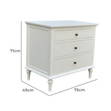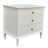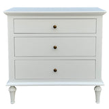 Features: Materials: birch wood, MDF, brass handles Includes: 1 x chest of drawers Blend of style & organisation Durable birch wood & MDF construction with satin white finish 3 spacious drawers for nighttime essentials WARNING Children have died from furniture toppling over Always secure this furniture with an anchor deviceNever allow children to stand, climb or hang on drawers, doors, or shelvesNever open more than one drawer at a timePlace heavy items down lowNever place a television on this furniture