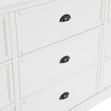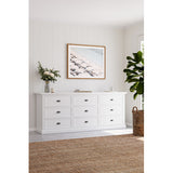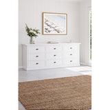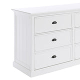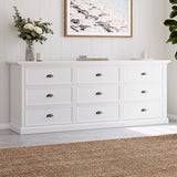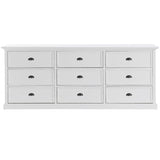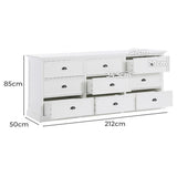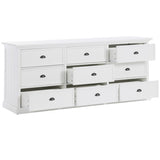 Features: Materials: MDF frame, legs, & drawers; steel drawer runners & handles; hard plastic foot pads Includes: 1 x chest of drawers, 1 x assembly manual Timeless brass finish on the handles Elegant profiling around the top & bottom parts of the frame that makes it a sophisticated addition to your home Excellent help in providing you extra storage with 9 drawers & a large benchtop area Can be used in many areas of the house & may be used as a buffet in the living/kitchen areas We've tested it for you - the surface is resistant to liquids & staining, just be sure to wipe up spills as soon as possible WARNING Children have died from furniture toppling over Always secure this furniture with an anchor deviceNever allow children to stand, climb or hang on drawers, doors, or shelvesNever open more than one drawer at a timePlace heavy items down lowNever place a television on this furniture