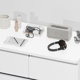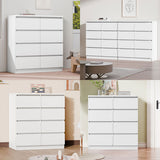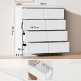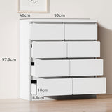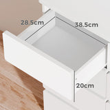 Features: Materials: particleboard and MDF with melamine finish, steel door runners Includes: 1 x chest of drawers, 1 x assembly manual, 1 x anti-topple kit Rounded corners on the drawer fronts offer a fluid, contemporary feel Matching back panel with supportive beams for added stability Enhanced wear-resistant melamine finish Spacious drawers WARNING Children have died from furniture toppling over Always secure this furniture with an anchor deviceNever allow children to stand, climb or hang on drawers, doors, or shelvesNever open more than one drawer at a timePlace heavy items down lowNever place a television on this furniture