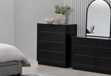 Product Code: 779480001 Embrace the beauty and functionality of the Huffman 4 Drawer Tall Chest in black, a perfect addition to elevate your storage solutions. Its chic shaker-style drawer fronts exude timeless elegance, adding a touch of sophistication to any space. With four push-to-open drawers, this chest offers ample storage for your belongings, keeping your room organised and clutter-free. The sleek and modern design seamlessly blends with various room decors, making it a standout statement piece for your room. Each drawer has a weight limit of 8kg, with an overall weight limit of 80kg. The Huffman Black 4 Drawer Tall Chest combines style and practicality for a versatile storage option. Click here to view Furniture Safety Information Ready To Assemble This product comes ready to assemble. Assembly Instructions To download assembly instructions for this product click here
