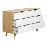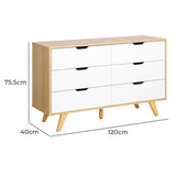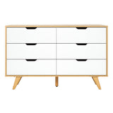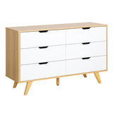 Features: Materials: particleboard tabletop, frame & drawers, pine wood legs Includes: 1 x chest of drawers, 1 x set of assembly parts, 1 x assembly manual Sturdy & durable construction Stylish design Provides great storage space & helps keep everything organised 6 x spacious drawers Quick to assemble Easy to maintain & clean Comes with an anti-topple kit for safety WARNING Children have died from furniture toppling over Always secure this furniture with an anchor deviceNever allow children to stand, climb or hang on drawers, doors, or shelvesNever open more than one drawer at a timePlace heavy items down lowNever place a television on this furniture