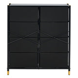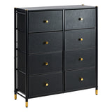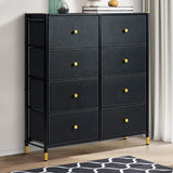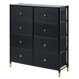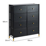 Features: Materials: steel frame and legs, particleboard tabletop, non-woven polyester fabric drawers, MDF board with PU leather front drawer panels, plastic handles and foot pads Includes: 1 x chest of drawers, 1 x assembly manual, 1 x anti-topple kit, 1 x set of plastic foot pads Eight removable drawers provide ample, versatile storage space Sturdy steel legs and crossbar ensure lasting stability WARNING Children have died from furniture toppling over Always secure this furniture with an anchor deviceNever allow children to stand, climb or hang on drawers, doors, or shelvesNever open more than one drawer at a timePlace heavy items down lowNever place a television on this furniture