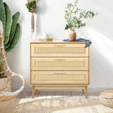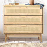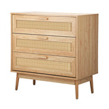 Features: Materials: particleboard, genuine rattan, powder-coated stainless steel, oak wood legs & handles, rubber foot pads Includes: 1 x chest of drawers Has three spacious drawers Easy to maintain & clean WARNING Children have died from furniture toppling over Always secure this furniture with an anchor deviceNever allow children to stand, climb or hang on drawers, doors, or shelvesNever open more than one drawer at a timePlace heavy items down lowNever place a television on this furniture