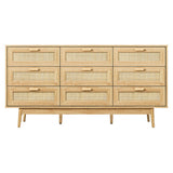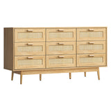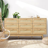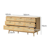 Features: Materials: particleboard frame & drawer, genuine rattan panels, powder-coated stainless steel runners, oak wood legs & handles Includes: 1 x chest of drawers, 1 x assembly manual, 1 x anti-tip kit Wood grain design High-quality, sustainably sourced hardwood for exceptional durability 9 spacious drawers with smooth gliding mechanisms Keeps your living space neat & clutter-free Suitable for bedroom, living room, hallway, or home office WARNING Children have died from furniture toppling over Always secure this furniture with an anchor deviceNever allow children to stand, climb or hang on drawers, doors, or shelvesNever open more than one drawer at a timePlace heavy items down lowNever place a television on this furniture