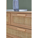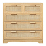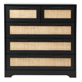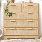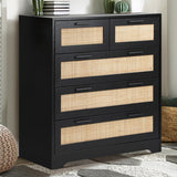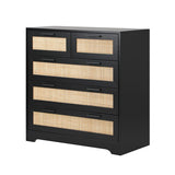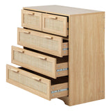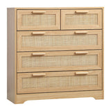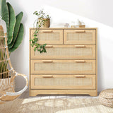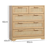 Features: Materials: particleboard frame, genuine rattan cabinet door panels, oak wood handles, powder-coated stainless steel runners, rubber foot pads Includes: 1 x chest of drawers, 1 x assembly manual Wood grain design & solid wood handles It has 5 spacious drawers Easy maintenance & cleaning WARNING Children have died from furniture toppling over Always secure this furniture with an anchor deviceNever allow children to stand, climb or hang on drawers, doors, or shelvesNever open more than one drawer at a timePlace heavy items down lowNever place a television on this furniture