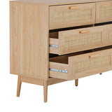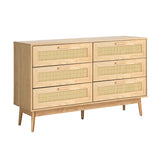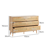 Features: Materials: rattan front drawer, particleboard with oak veneer finish body, oak wood legs & handles, stainless steel drawer runners Includes: 1 x chest of drawers 6 x spacious drawers Smooth metal drawer runners Easy maintenance Wooden bar handles are made with the same oak wood as the legs Woven rattan drawer fronts are perfect in a coastal or boho setting Handle dimensions: H1.5 x W11.3cm Distance between the screw holes: 9.6cm WARNING Children have died from furniture toppling over Always secure this furniture with an anchor deviceNever allow children to stand, climb or hang on drawers, doors, or shelvesNever open more than one drawer at a timePlace heavy items down lowNever place a television on this furniture