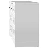 Features: Materials: particleboard, aluminium alloy handles Includes: 1 x chest of drawers, 1 x set of assembly parts, 1 x assembly manual Sturdy Hamptons style furniture 1.5cm thick particleboard Spacious drawers Anti-tipping kit keeps the furniture in place Easy to maintain, clean, & assemble Pure white colour with matte finish WARNING Children have died from furniture toppling over Always secure this furniture with an anchor deviceNever allow children to stand, climb or hang on drawers, doors, or shelvesNever open more than one drawer at a timePlace heavy items down lowNever place a television on this furniture