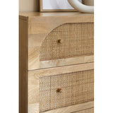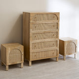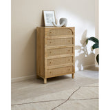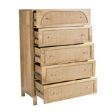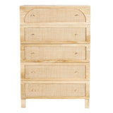 NATURAL ANYA MANGO WOOD & RATTAN 5 DRAWER CHEST
