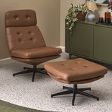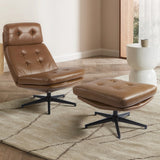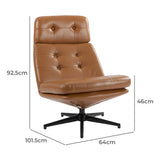 Features: Materials: LVL & plywood frame, stainless steel legs, PU & top-grain leather upholstery, high-density foam seat padding, polyester foam back padding Includes: 1 x accent chair, 1 x footstool, 1 x assembly manual Crafted with a combination of high-quality PU & top-grain leather, offering a luxurious feel & durability for everyday use A modern take on a classic mid-century design Both the accent chair & the footstool have a 360° swivel We acknowledge that animal based or derived products are not for everyone. Typically, such products are sourced as by-products of the food production industry. Our trading terms with our suppliers require that all products meet or exceed strict Australian Government safety, testing, certification and import standards. Product Details: Recommended Weight Capacity: Accent Chair: 250 Kilograms Recommended Weight Capacity: Footstool: 120 Kilograms