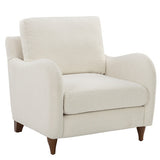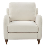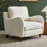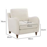 Features: Materials: pine wood & plywood frame, walnut wood legs, boucle fabric upholstery (90% polyester & 10% acrylic), foam & fibre padding Includes: 1 x armchair, 1 x set of assembly parts, 1 x assembly manual Its gently curved armrests are a chic modern update to a classic armchair Beautiful turned walnut wood legs are sturdy & strong Generous seat depth for added comfort Loose seat & back cushion for easy adjustment Has a soft to medium seat firmness, ensuring a comfortable seat all day long Inviting boucle upholstery is ultra-comfortable & adds dimension to your space Product Details: Recommended Weight Capacity: 120 Kilograms