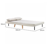 Features Size: Double Bed Type: Fold Out Sofa Bed Mattress Type: Foam Mattress Consumer Advice: We strongly recommend using suitable floor protection to prevent damage to hard surface floors (e.g. a non-slip rug or non-slip furniture feet protectors). Regular checks to ensure that fixings are tight and the supporting legs remain securely in place is also required. Frame Material: Metal Legs Included: YesLegs Material: Rubberwood Upholstery Material: PolyesterUpholstery Material Details: 100% polyester Seat Padding Material: Foam Back Padding Material: Foam Seat Suspension Type: WebbingSuspension Details: Polypropylene webbing Seat Cushion(s) Removable: No Cushions Included: Yes Back Cushion(s) Removable: No Removable Cushion Cover: No Machine Washable Cushion Cover: No Trundle Included: No Seating Capacity: 2 Comfort Level: Medium Recommended Weight Capacity: 120 Kilograms Foot Pads Included: YesFoot Pads Type: Rubber pads Additional Floor Protectors Advised for Wooden Floors: Yes Style: MidCentury; Scandinavian Pattern: Solid Box Contents: 1 x sofa bed Care Instructions: Wipe clean with a dry cloth, do not use strong liquid cleaners Assembly Assembly Required: YesType of Assembly: Minimal Limited warranty Product Warranty: 3 Years StyleThe Aero 2 Seater Sofa Bed is a MidCentury or Scandinavian style product. Scandinavian style is exemplified by clean-lines, simple, and functional. Scandinavian interiors feature bright white on floors, fabrics, and walls.While, unpainted, light wood furniture that embraces the natural grain adds much-needed warmth to spaces. Sleek, utilitarian furniture without much embellishmentis a mainstay in this minimalist style with a modern flair. You can shop for more MidCentury or Scandinavian Sofa Beds in the Furniture section of our site.