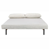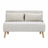 Features: Frame materials: metal Upholstery materials: 100% polyester fabric Leg materials: rubberwood Size: narrow double Extra cushions are included