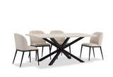 Product Code: 835860001 Arabella 7 Piece Dining Suite with Cedric Dining Chairs: Elegant Dining Redefined Bring a new level of style and comfort to your dining space with the Arabella 7 Piece Dining Suite, featuring the sophisticated Cedric Dining Chairs. Designed for modern living, this suite effortlessly balances stunning aesthetics with practical functionality. Key Features: Marble-Look Dining Table Top: Beautiful, durable, and easy to clean, designed to withstand everyday use. Heat Resistant Surface: The table top is heat resistant up to 100 degrees Celsius for extra durability and peace of mind. Black Powder Coated Geometrically Designed Legs: A bold, modern frame that offers outstanding stability and visual interest. Cedric Dining Chairs in Cream Fabric: Soft and luxurious upholstery paired with a supportive curved back for superior comfort. Contemporary Styling: A seamless blend of textures and tones, perfect for modern and transitional interiors. Complete Dining Package: Includes 1 x Arabella Rectangle Dining Table and 6 x Cedric Dining Chairs for a ready-made designer look. Comfortable Seating: Generously padded seats make family meals and entertaining guests a more luxurious experience. Easy Maintenance: Both table and chairs are designed with busy lifestyles in mind, combining durability with simple care. Elevate everyday dining and create an inviting space for gatherings with the Arabella and Cedric Dining Suite - where comfort meets style. Your safety is our priority, click here to view Furniture Safety Information. Visit your nearest store to experience this in person. Ready To Assemble This product comes ready to assemble.
