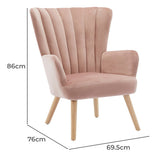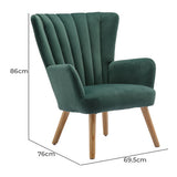 Features: Materials: 100% polyester velvet upholstery, rubberwood legs, steel frame, high-density foam seat & back padding Includes: 1 x armchair, 1 x assembly manual Distinctive shell backrest with wingback design Comfortable & suits body curves Skin-friendly velvet upholstery Built-in S-shaped springs for long term use Stable wooden legs Perfect to sit or snuggle up in comfort while reading, watching movies, sipping coffee, playing games, or tapping your laptop Great addition for small spaces in bedroom, living room, guest room or reception room Easy to assemble Product Details: Recommended Weight Capacity: 120 Kilograms