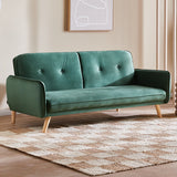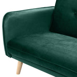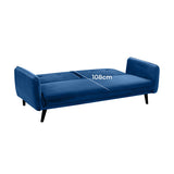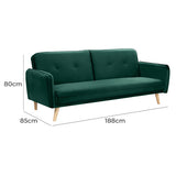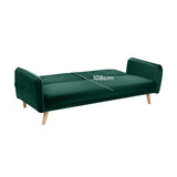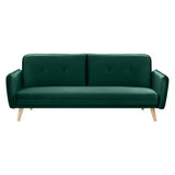 Features Size: Single Bed Type: Click Clack Sofa Bed Mattress Type: Inner Spring Mattress; Foam Mattress Consumer Advice: We strongly recommend using suitable floor protection to prevent damage to hard surface floors (e.g. a non-slip rug or non-slip furniture feet protectors). Regular checks to ensure that fixings are tight and the supporting legs remain securely in place is also required. Frame Material: Manufactured WoodFrame Material Details: Plywood Legs Included: YesLegs Material: Rubberwood Upholstery Material: PolyesterUpholstery Texture: VelvetUpholstery Material Details: 100% polyester Seat Padding Material: Foam Back Padding Material: Foam Mattress Included: YesMattress Material Details: 100% polyesterMattress Detachable: Yes Seat Suspension Type: SpringsSuspension Details: Bonnell springs Seat Cushion(s) Removable: No Seating Capacity: 3 Comfort Level: Medium Recommended Weight Capacity: 360 Kilograms Foot Pads Included: YesFoot Pads Type: Plastic Style: MidCentury; Scandinavian; Luxe Pattern: Solid Box Contents: 1 x sofa bed Care Instructions: Spot clean only Assembly Assembly Required: YesType of Assembly: MinimalRecommended Persons Required for Assembly: 1Assembly Details: Leg attachment only Limited warranty Product Warranty: 3 Years StyleThe Chelsea 3 Seater Velvet Sofa Bed is a MidCentury or Scandinavian style product. Scandinavian style is exemplified by clean-lines, simple, and functional. Scandinavian interiors feature bright white on floors, fabrics, and walls.While, unpainted, light wood furniture that embraces the natural grain adds much-needed warmth to spaces. Sleek, utilitarian furniture without much embellishmentis a mainstay in this minimalist style with a modern flair. You can shop for more MidCentury or Scandinavian Sofa Beds in the Furniture section of our site.