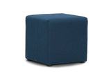 The Doze Fabric Ottoman is upholstered in a durable fabric cover and available in charcoal or navy blue.