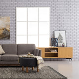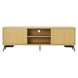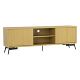 Features Type: TV Cabinets Frame Material: Manufactured WoodFrame Material Details: MDF frame, metal legs Cabinets Included: YesNumber of Doors: 2Number of Interior Shelves: 2Interior Shelf Material: MDF Open Shelves Included: YesNumber of Open Shelves: 2Open Shelf Material: MDF Cable Hole Included: YesNumber of Cable Holes: 1 Recommended Weight Capacity: 10 Kilograms Primary Colour: Light Wood Style: Mid Century Collection: Faulkner Topple Risk: Yes Care Instructions: Wipe clean with a dry cloth,Do not use strong liquid cleaners  Assembly Assembly Required: YesType of Assembly: MinimalRecommended Persons Required for Assembly: 1Assembly Details: Screw on panels  Limited warranty Product Warranty: 1 Year