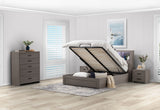 GEOVANA 4 PIECE QUEEN BED TALL CHEST SUITE. GREY