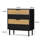 Features: Materials: E1 grade particleboard with melamine finish frame, MDF drawers, iron legs and handles, stainless steel drawer runners Includes: 1 x chest of drawers, 1 x assembly manual, 1 x anti-topple kit Made from E1 grade and 1.5cm thick particleboard frame Four spacious drawers Wear-resistant melamine finish Delicate metal handle design Smooth drawer runners Comes with anti-topple kit WARNING Children have died from furniture toppling over Always secure this furniture with an anchor deviceNever allow children to stand, climb or hang on drawers, doors, or shelvesNever open more than one drawer at a timePlace heavy items down lowNever place a television on this furniture