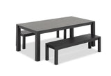 LA PALOMA 3 PIECE OUTDOOR DINING TABLE WITH NAVITI BENCH SETTING CHARCOAL